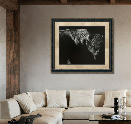 Enduring | Framed Lodge Buffalo Art in Double Mat | 25L X 29W" Inches