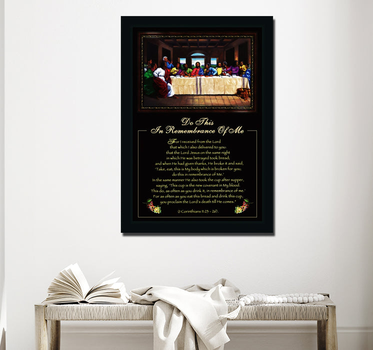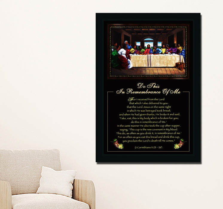 "Do This In Remembrance" framed art print, comes delivered ready to hang, with wire hangers included and no additional framing needed. We print on heavy stock art paper to ensure the highest quality results. Decorate your home or office with this high-quality art for many years to come.