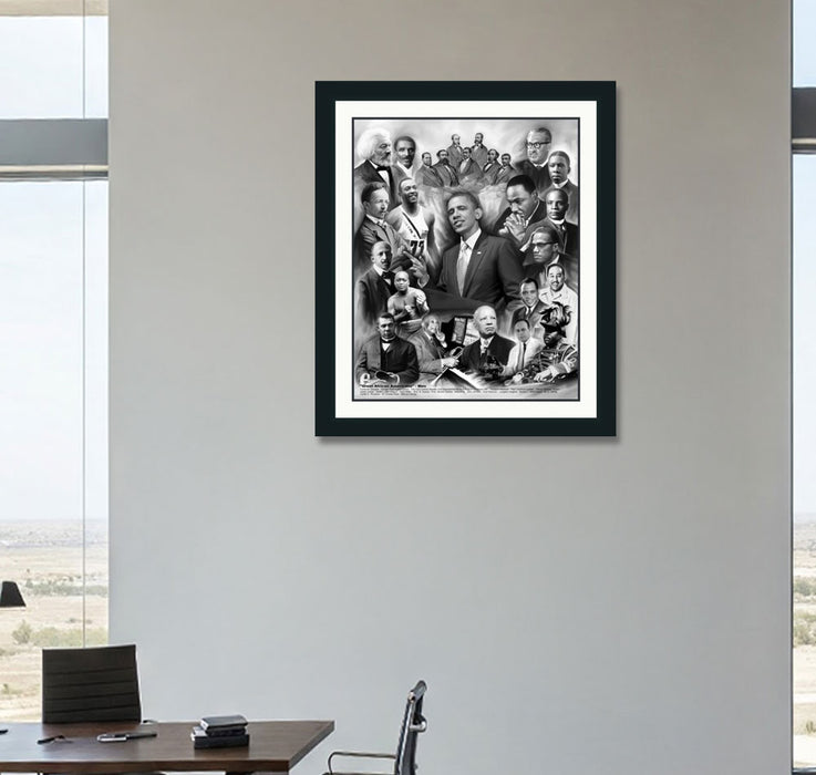 Great African American Men | Framed Famous Black Men Collage Art in Double Mat | Various Sizes