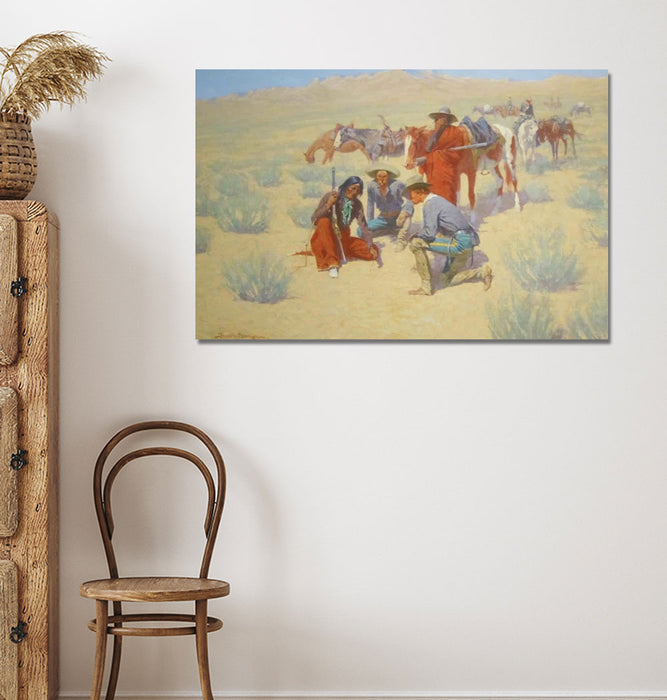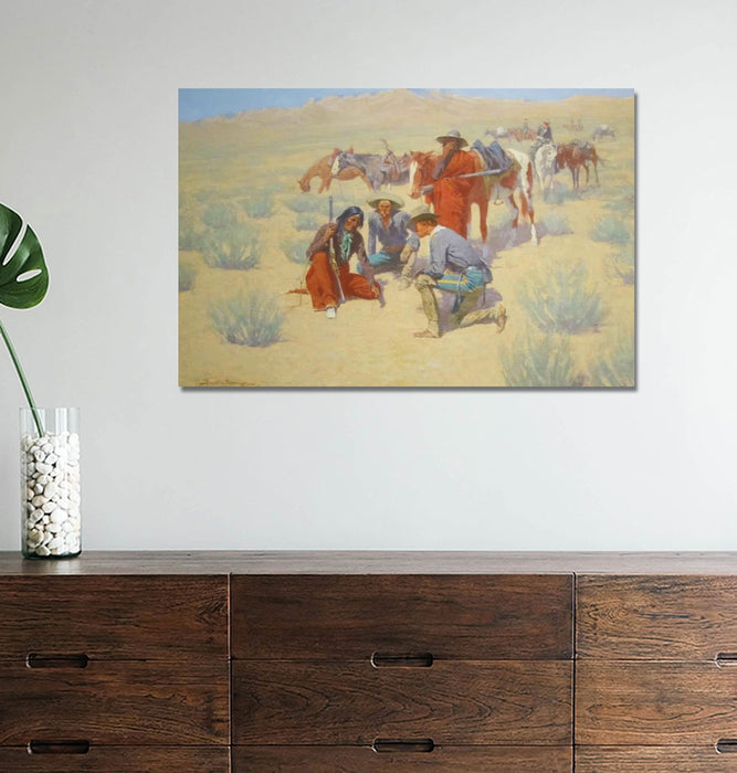 Frederic Remington was an American painter, illustrator, sculptor, and writer known for his depictions of the West. For the most part, his paintings featured cowboys, American Indians, horses, and the U.S. Cavalry. His style has been described as naturalistic and sometimes impressionistic. And, unlike other Western artists, Remington steered clear of realism. His subject matter was primarily the people and animals of the West, portraying men almost exclusively.