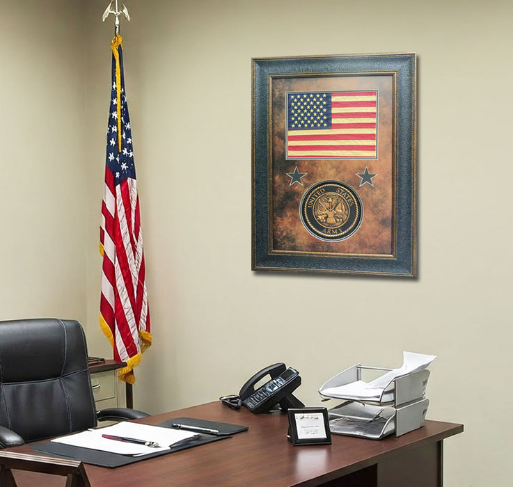 American Flag with Army Seal Shadowbox | Real Cotton Cloth Embroidered Flag | 37L X 27W" Inches
