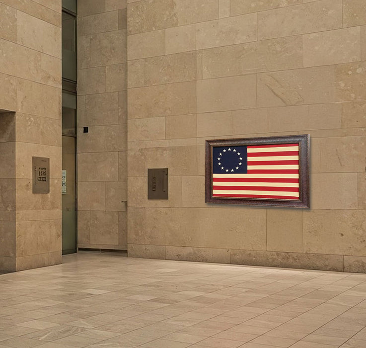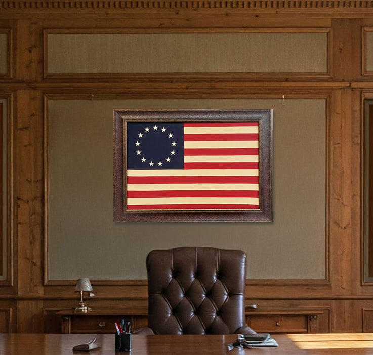 Framed Betsy Ross Flag | Real Cotton Cloth Embroidered Flag | 31L X 43W" Inches