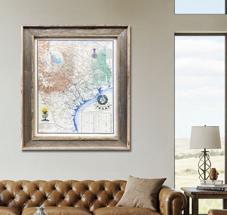 "Revolutionary Map of Texas 1836" framed map in barnwood frame, comes delivered ready to hang, with wire hangers included and no additional framing needed. Decorate your home or office with this high-quality art for many years to come.