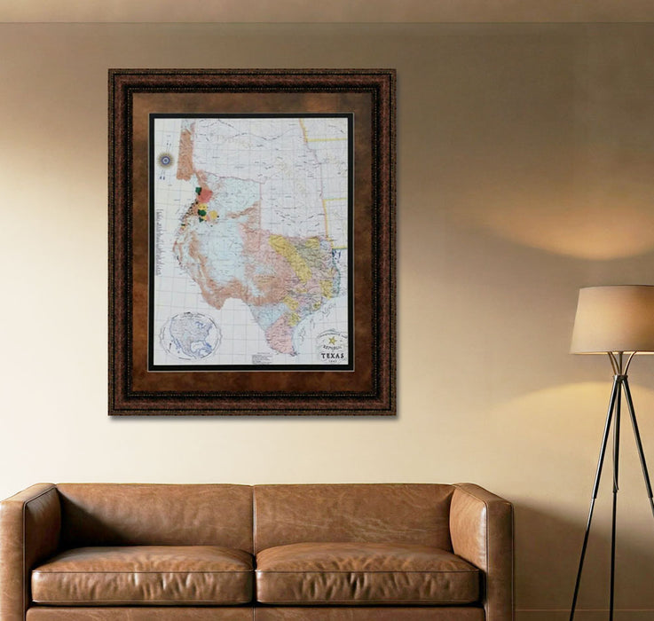 "Republic of Texas 1845" framed art with double mat, comes delivered ready to hang, with wire hangers included and no additional framing needed. Decorate your home or office with this high-quality art for many years to come.