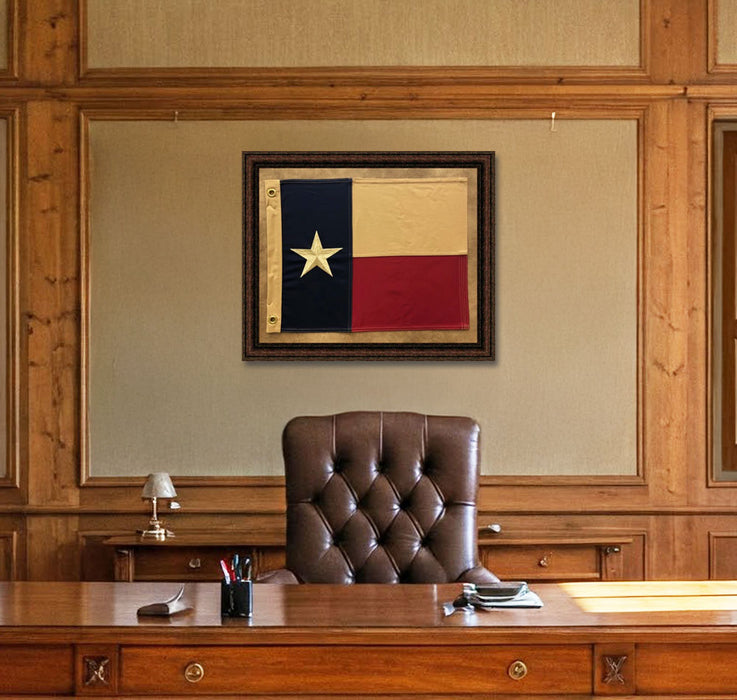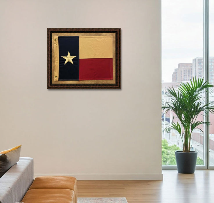 Framed Texas Flag with Grommets | Real Cotton Cloth Embroidered Flag | 25L X 29W Inches