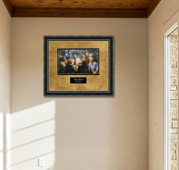 "True Blues" framed art with double mat, comes delivered ready to hang, with wire hangers included and no additional framing needed.  Decorate your home or office with this high-quality art for many years to come.