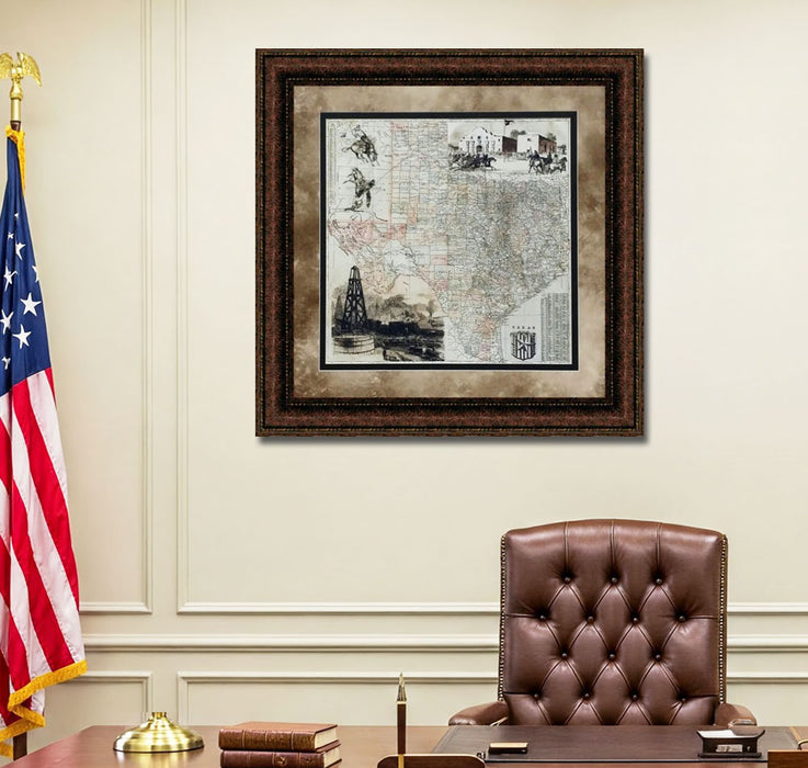 "Antique Map of Texas" framed art with double mat comes delivered ready to hang, with wire hangers included and no additional framing needed. We print on heavy stock art paper to ensure the highest quality results. Decorate your home or office with this high-quality art for many years to come.