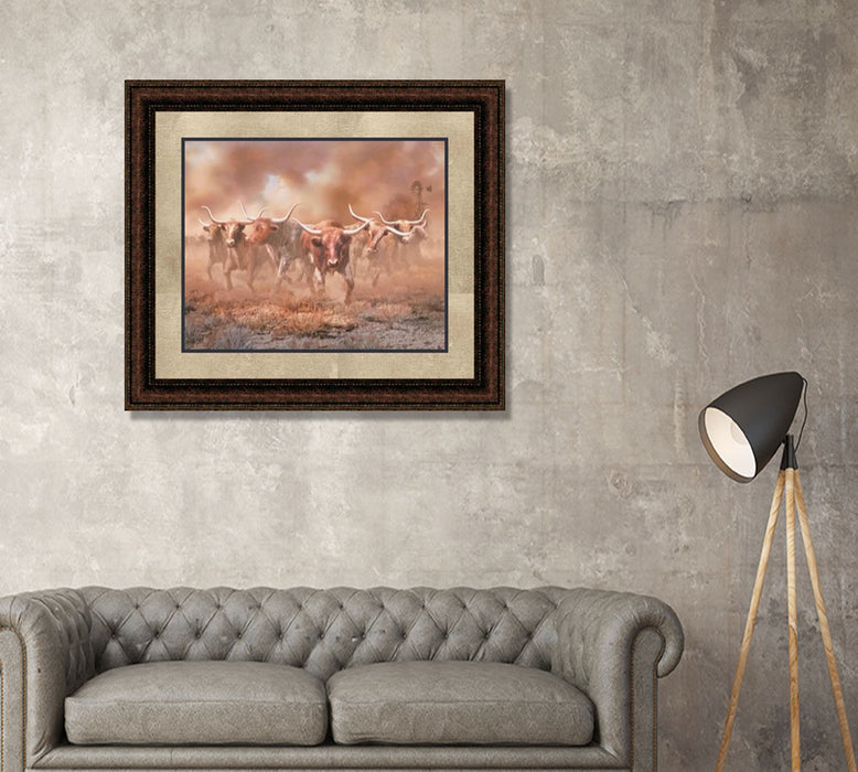 Day of the Horns | Western Framed Longhorn Art in Double Mat | 21L X 25W" Inches