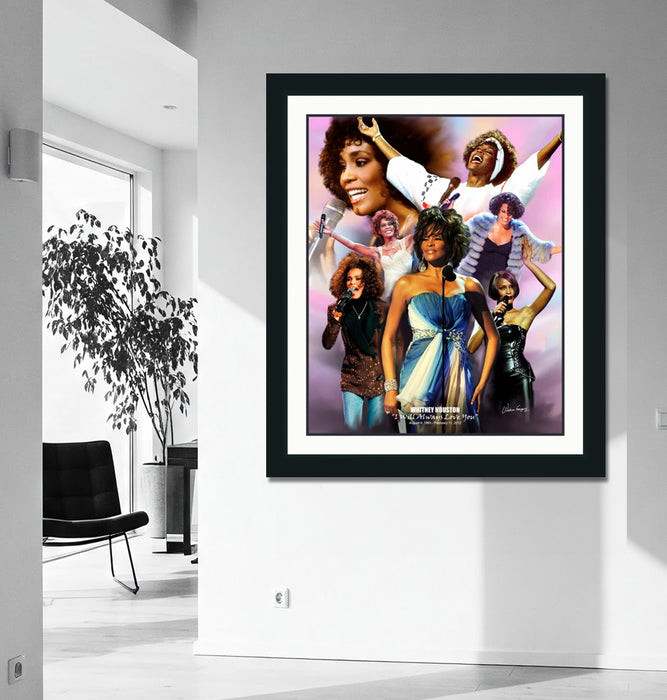 Whitney Houston | Framed Famous Black Musicians Collage Art in Double Mat | Various Sizes