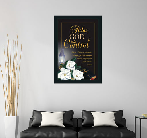 God Is In Control | Framed Religious Black Art | 41L X 29W" Inches