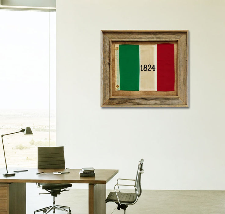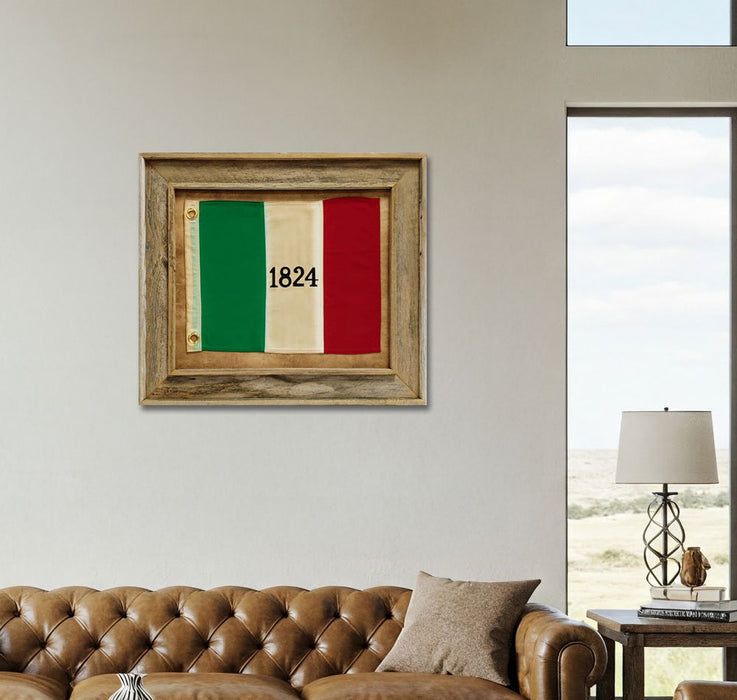 Framed Barnwood 1824 Alamo Flag with Grommets | Real Cotton Cloth Embroidered Flag in Real Barnwood Frame | 27L X 31W" Inches