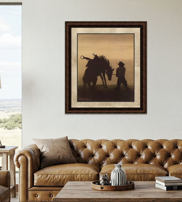 Bucking Horse Silhouette | Framed Western Horse Art in Double Mat | 25L X 21W" Inches