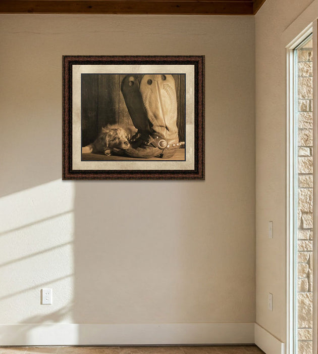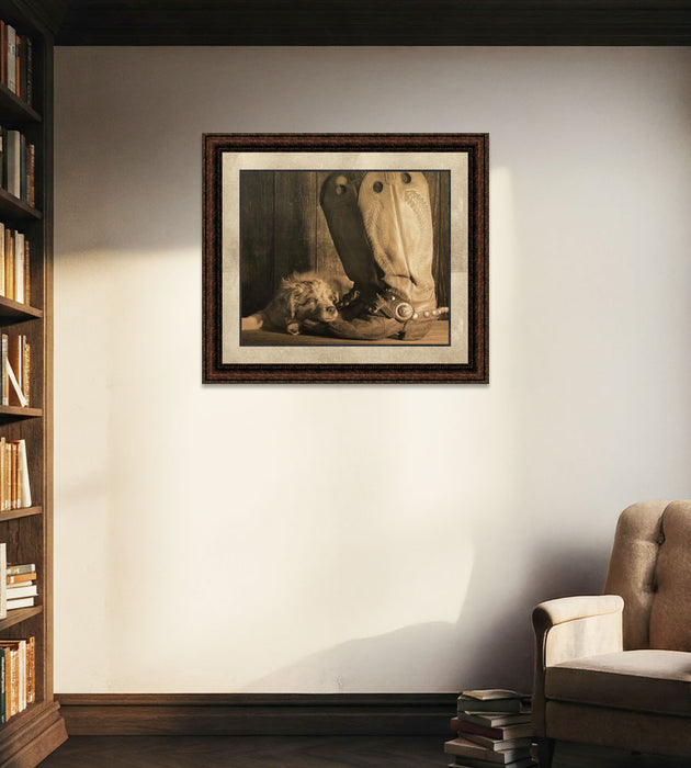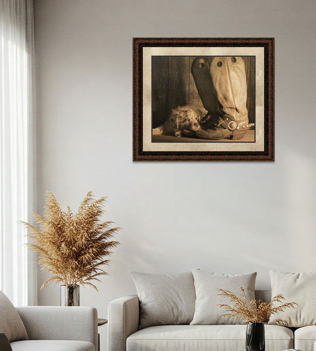 Dixie | Framed Western Puppy Art in Double Mat | 21L X 25W" Inches