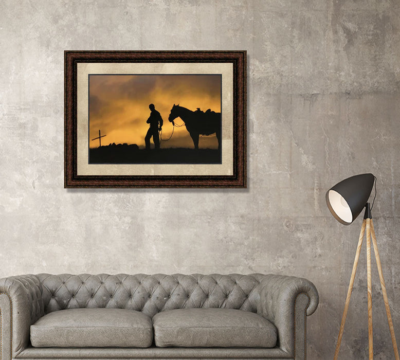 Evening Visit | Framed Western Horse Art in Double Mat | 21L X 25W" Inches