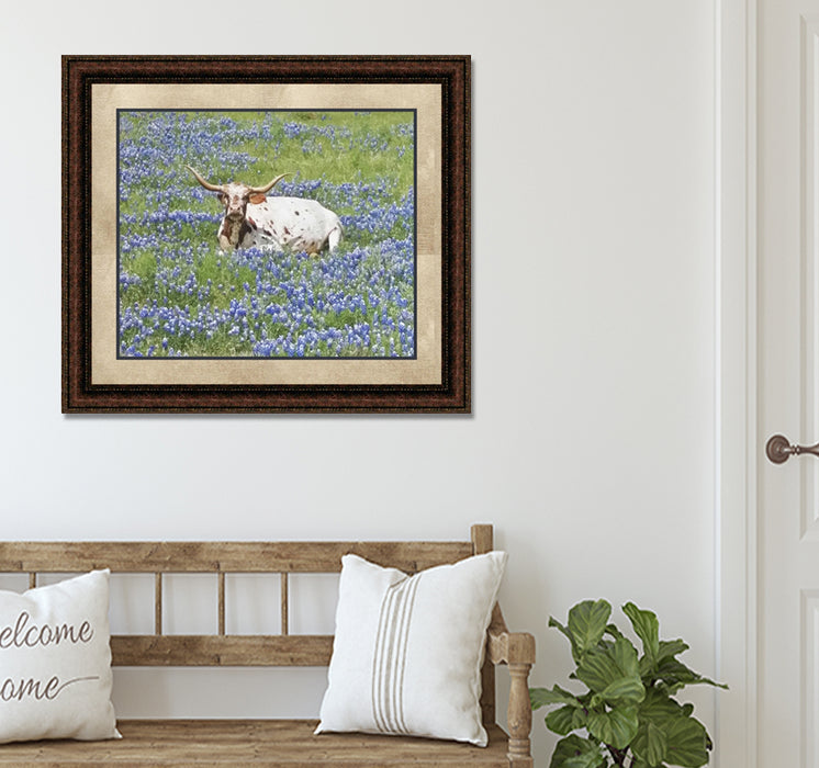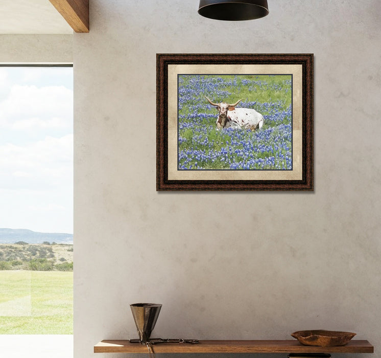 Longhorn in Blue Bonnet | Cattle Art Canvas or Framed Print | Various Sizes