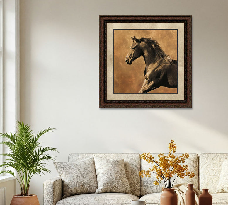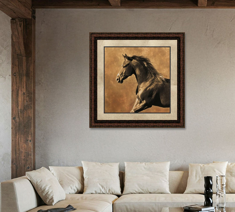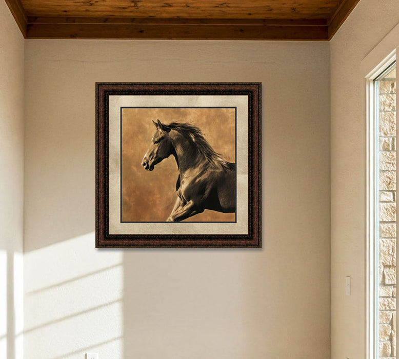 Westward Gallop | Framed Western Horse Art in Double Mat | 21L X 21W" Inches